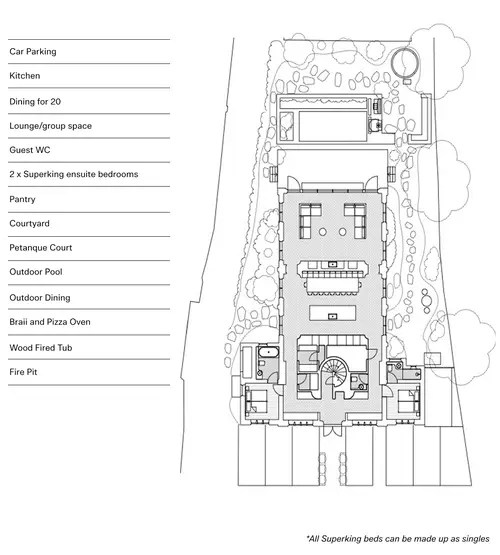 From a former youth hostel, ARC have fashioned a bright, modern house full of unique spaces for entertaining and sleeping up to 20. With a generous living and dining room, outdoor pool, hot tub and alfresco kitchen, it’s a superb choice for retreats, corporate trips or gatherings of family and friends.